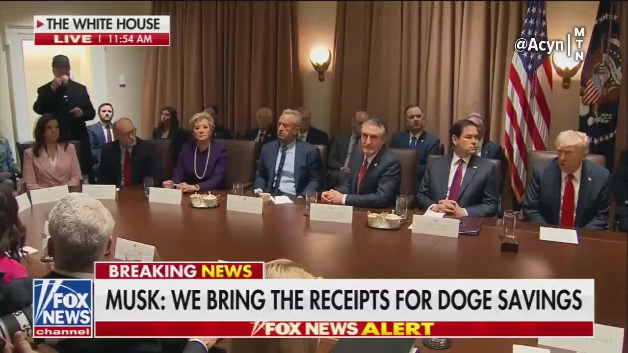 虽然不是内阁成员,但世界首富马斯克以“政府效率部”人员的身份列席会议,和内阁官员的助手们一起低调坐在会议室角落里。