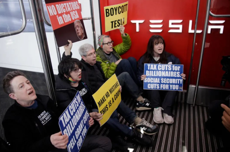 抗议马斯克“干政”,全美多地爆发抵制特斯拉示威活动。