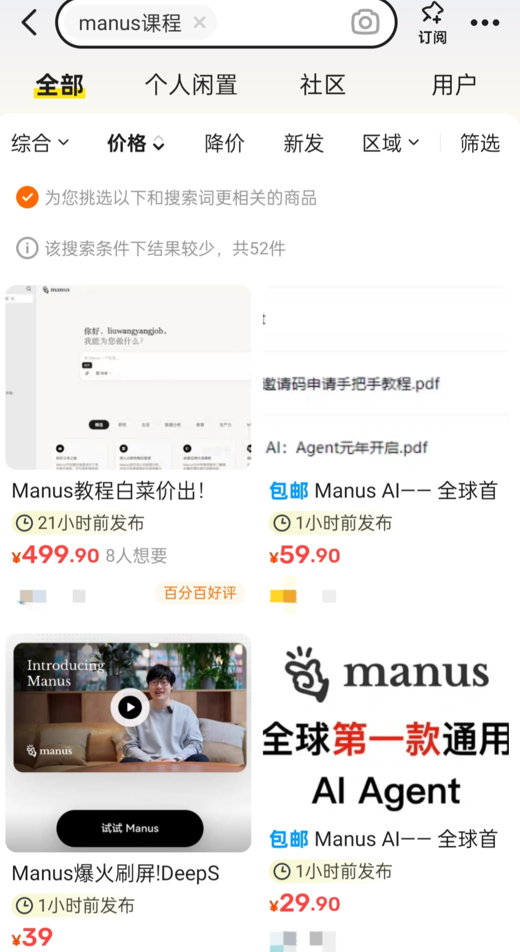 据红星资本局3月7日消息,近日,一款名为Manus的AI产品引发广泛关注,Manus邀请码也被炒至数万元。此外,还有人在二手平台卖Manus使用教程、交流群,或者代申请账号等。