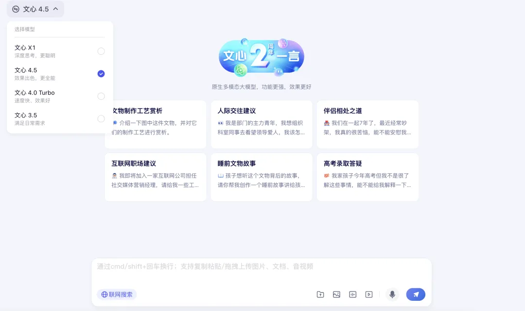 同时,文心大模型4.5已上线百度智能云千帆大模型平台,企业用户和开发者登录即可调用API;文心大模型X1也即将在千帆上线。百度搜索、文小言APP等产品,将陆续接入文心大模型4.5和文心大模型X1。