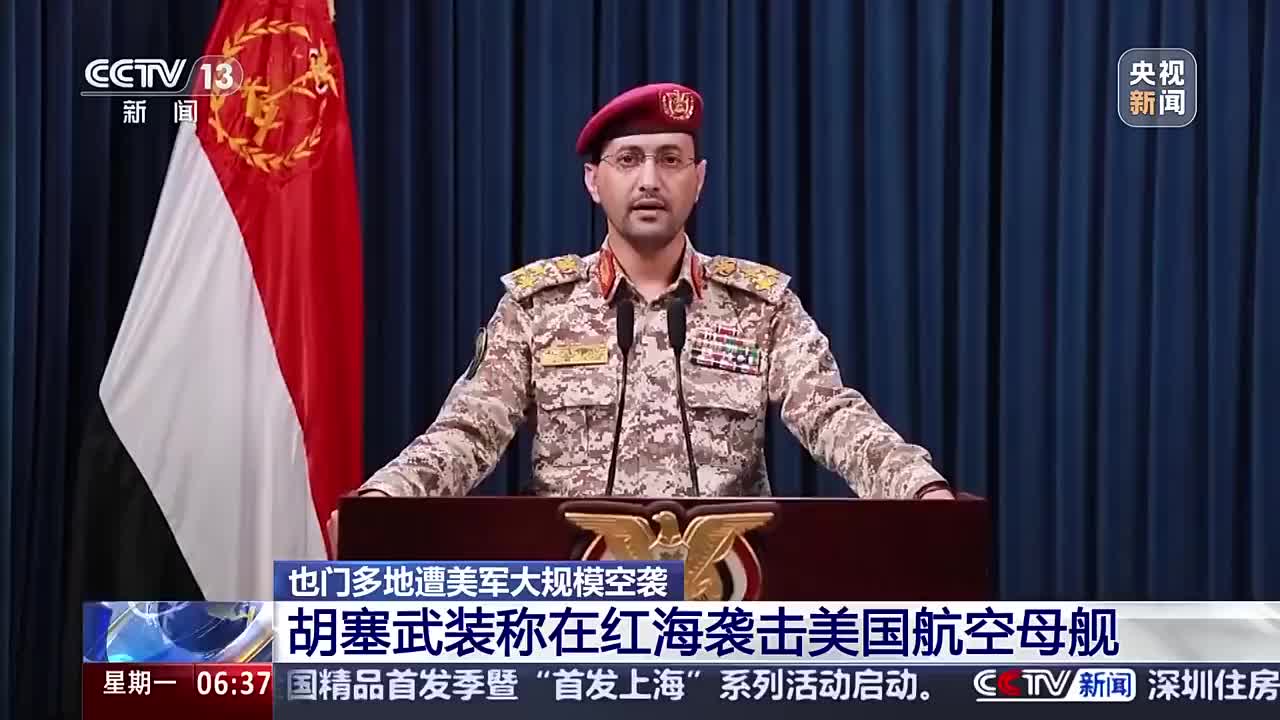 胡塞武装称袭击美航空母舰。