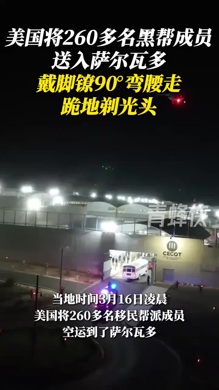 外包监狱?美国黑帮成员被送入萨尔瓦多监狱:戴脚镣90°弯腰走,跪地剃光头。