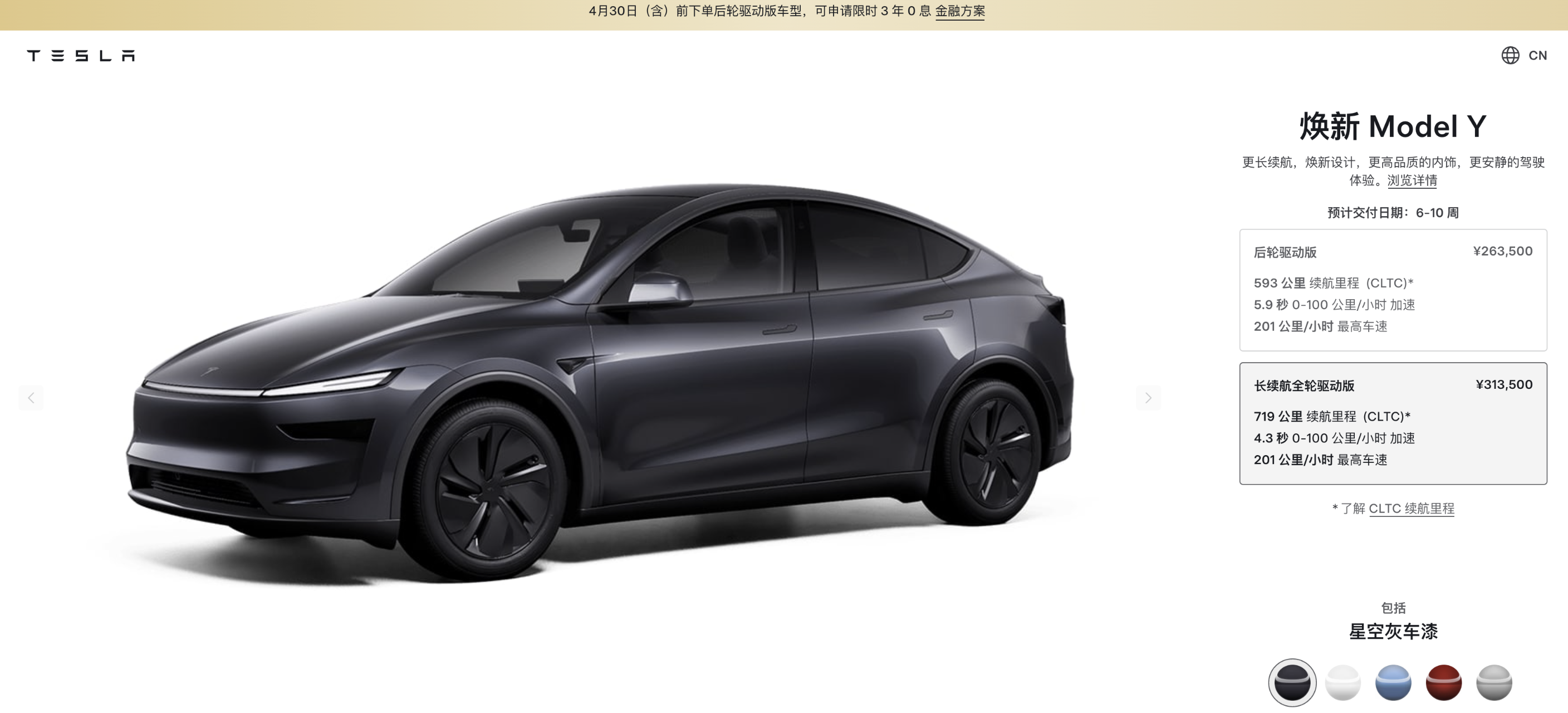 据财联社3月18日消息,特斯拉官网今日显示,特斯拉焕新Model Y长续航全轮驱动版涨价1万元,最新价格313,500元。据悉,该车型后轮驱动版价格不变,推出3年0息和5年超低息政策,月供低至3808元。