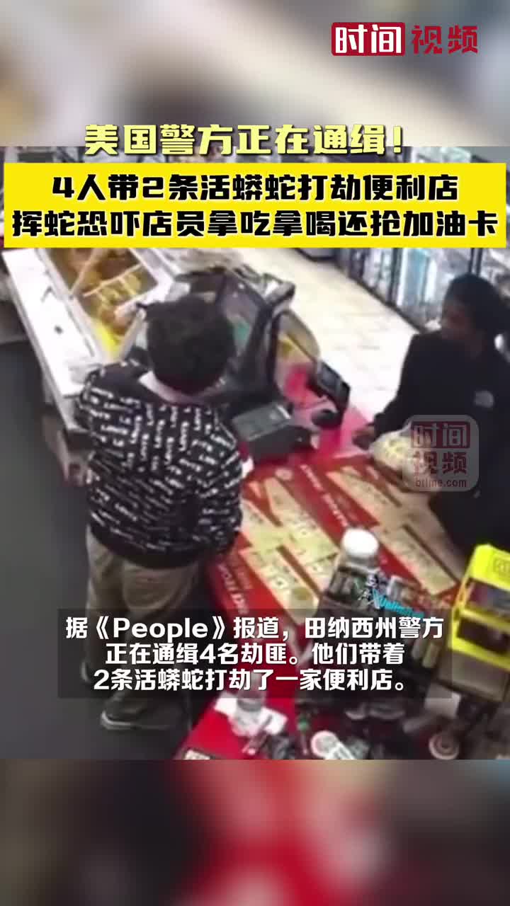 据《People》报道,近日,美国田纳西州警方正在通缉4名劫匪。他们带着2条活蟒蛇打劫了一家便利店。监控显示,劫匪挥舞着蟒蛇,并将蟒蛇放在收银台上震慑工作人员。除了吃的喝的,劫匪还拿走了一张400美元的加油卡。 (via 时间视频)