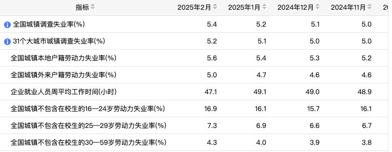 国家统计局发布2月份分年龄组失业率数据。2月份,全国城镇不包含在校生的16-24岁劳动力失业率为16.9%,不包含在校生的25-29岁劳动力失业率为7.3%,不包含在校生的30-59岁劳动力失业率为4.3%。