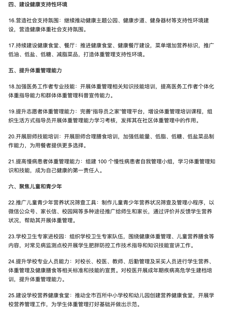 北京市疾控中心发布2025年25条“体重管理”措施。