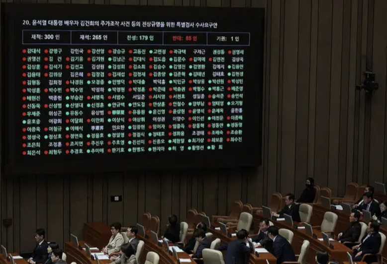 2024年12月12日,韩国国会举行全体会议,通过了调查总统夫人的“金建希特检法”。