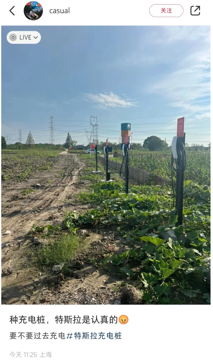 特斯拉充电桩“落户”上海油菜花田引热议,园区回应:正在迁移。