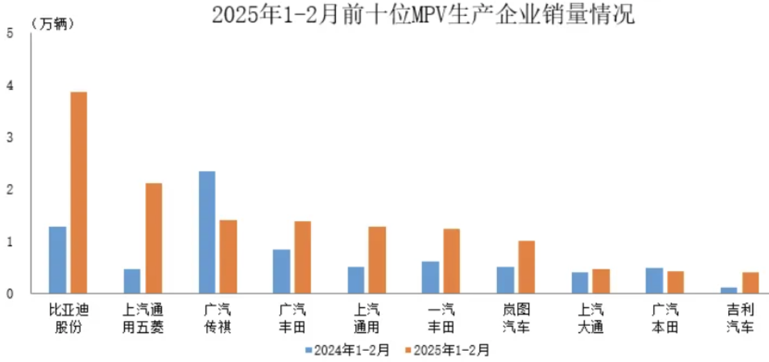 中汽协:1-2月销量排名前十MPV生产企业共销售13.6万辆。