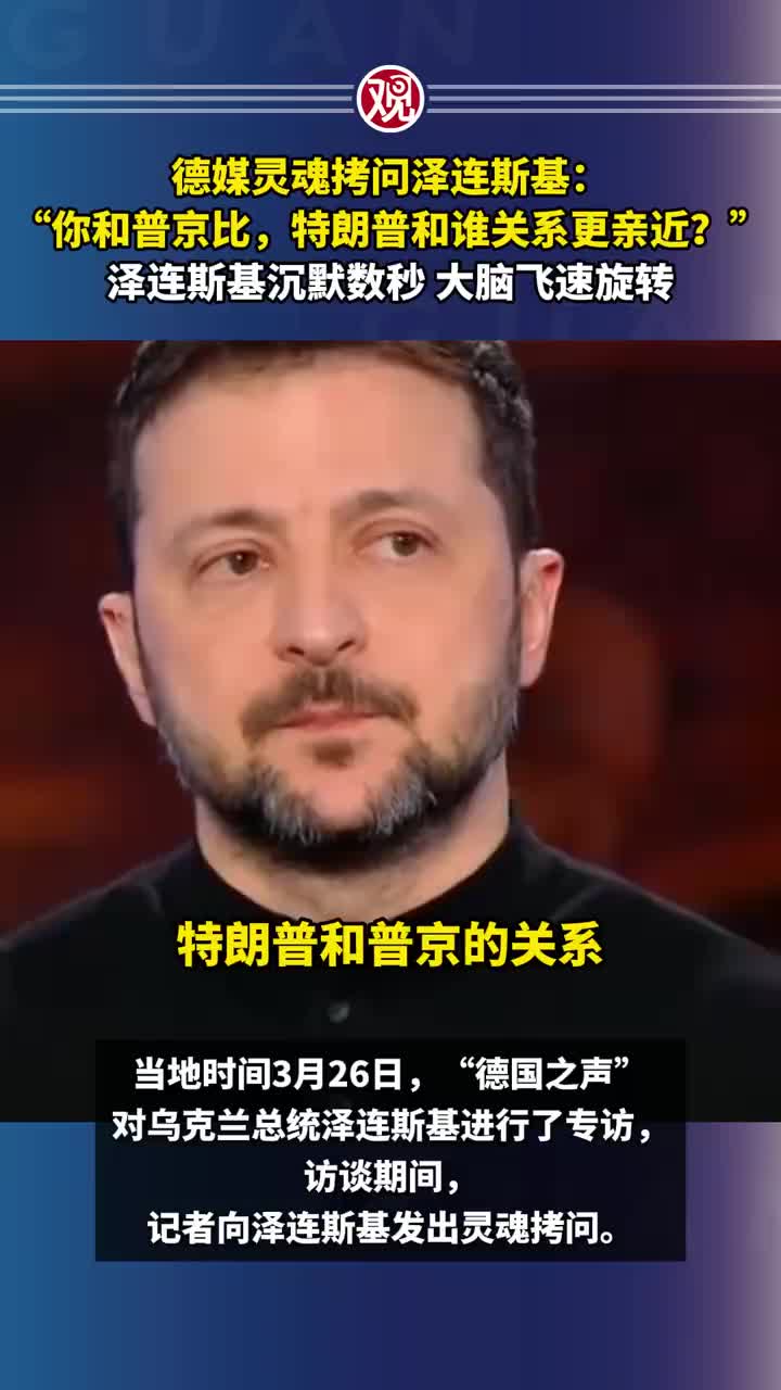 泽连斯基被问特朗普亲近他还是普京,泽连斯基沉默数秒,大脑飞速旋转。(via 观察者网)