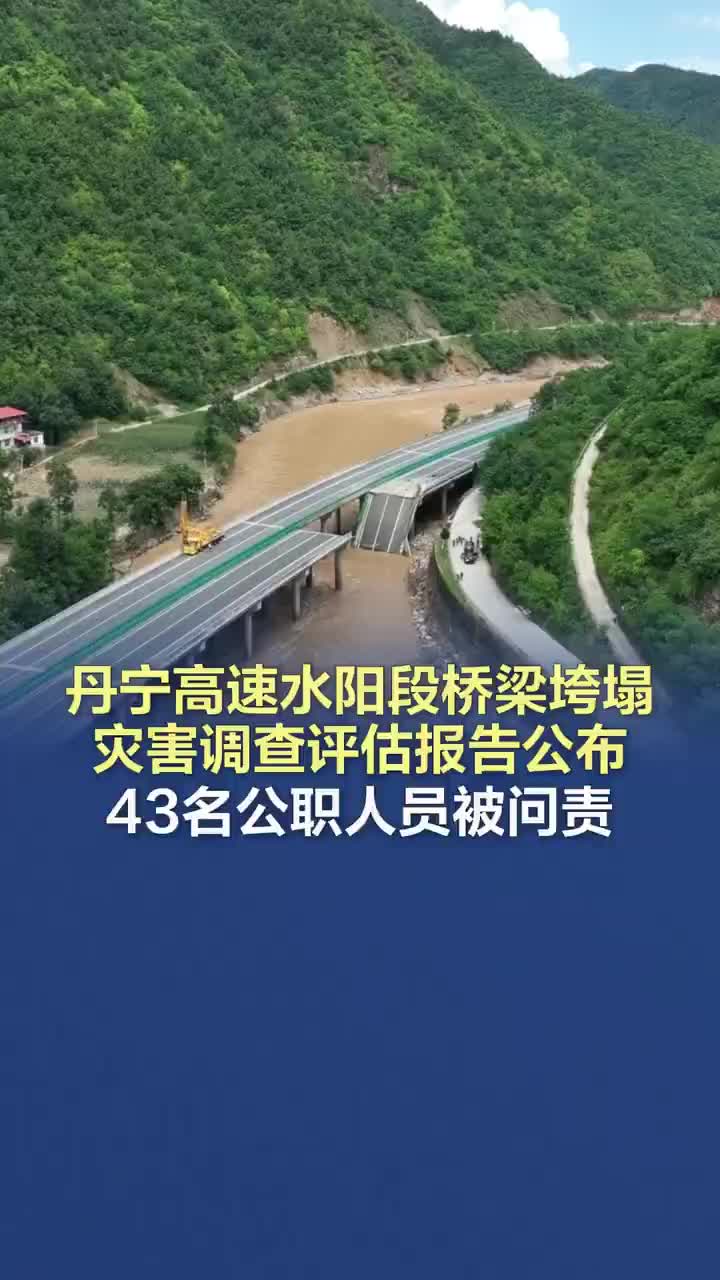 据陕西省纪委监委3月27日消息,日前,经中央纪委国家监委和陕西省委批准,陕西省纪委监委成立丹宁高速水阳段桥梁垮塌灾害追责问责审查调查组,坚持实事求是、依规依纪依法,依据灾害调查评估报告,对丹宁高速水阳段桥梁垮塌灾害涉及桥梁工程建设、运营管护失职失责问题全面深入开展审查调查,在查清事实、厘清责任的基础上,对5个责任单位及43名公职人员进行了追责问责。(via 北京日报都视频)