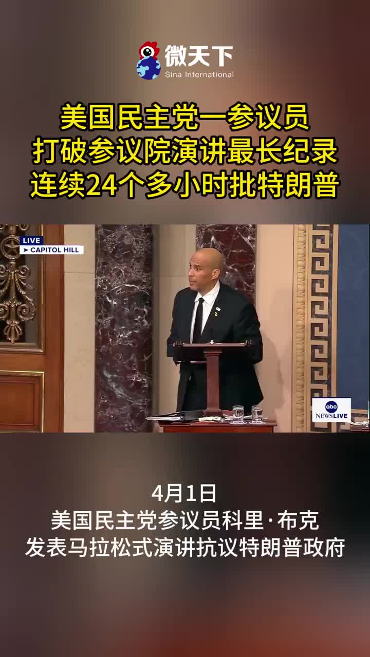 据环球网援引美国有线电视新闻网(CNN)、《国会山报》等媒体报道,美国民主党籍联邦参议员科里·布克当地时间周二(4月1日)以一段25小时5分钟的演讲,批评并警告特朗普政府正在给美国民众带来伤害,该演讲也创下了参议院历史上最长演讲纪录。
