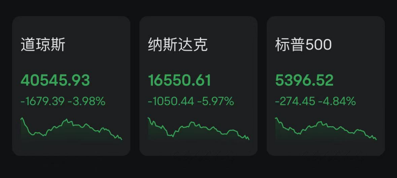 据上海证券报,当地时间周四,特朗普“对等关税”措施血洗市场,美股主要指数暴跌,刷新近5年来最大单日跌幅。纳指跌5.97%,创2020年3月以来最大单日跌幅;标普500指数跌4.84%,道指跌3.98%,均为2020年6月以来的最大单日跌幅。其中,标普500指数中超过80%的公司股价下跌,超过三分之二的公司股价下跌至少2%,市值总计蒸发约2.5万亿美元。