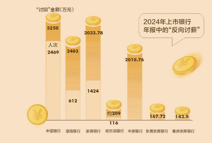 据南都,近日,南都湾财社记者梳理上市银行年报发现,多家银行在年报中提及去年绩效薪酬追索扣回情况。其中,中国银行追索扣回2469人次绩效薪酬3250万元,浙商银行追索扣回绩效薪酬3033.78万元,渤海银行追索扣回612人绩效薪酬2403万元,中原银行追索扣回绩效薪酬2010.76万元。此外,还有部分中小银行追索扣回上百万元。