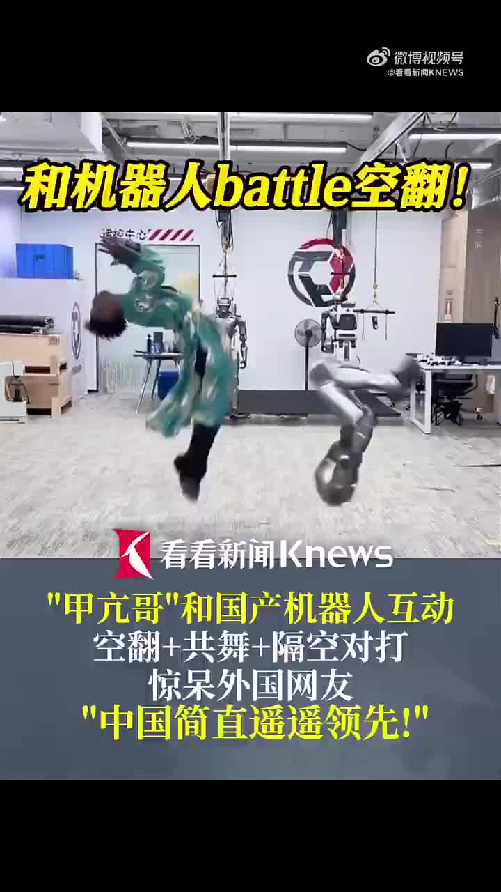 4月5日,坐拥3800万粉丝的网红“甲亢哥”Speed中国行直播来到了深圳,还发布了与众擎机器人互动的视频。画面中他与机器人一起做了空翻,还一同跳舞并“隔空搏击”,让外国网友赞叹:“中国真的什么都有!遥遥领先!” (via 看看新闻KNEWS)