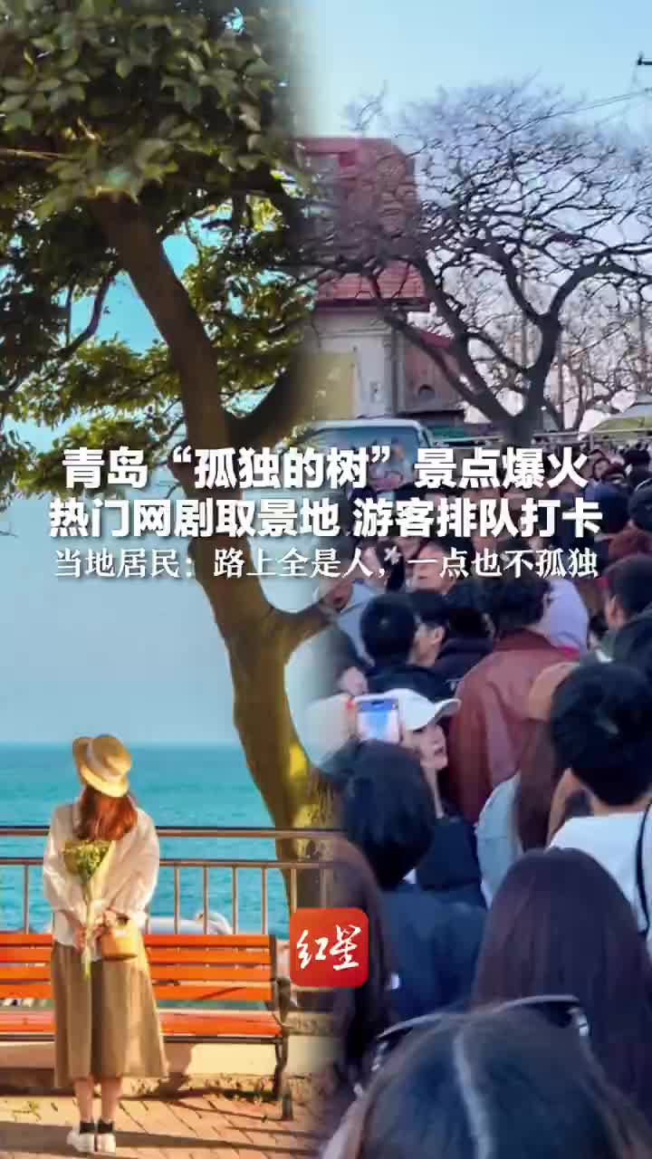 青岛孤独的树景点爆火,游客排队打卡,青岛文旅局回应。