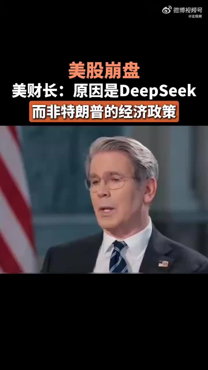 美股崩盘,美财长:原因是DeepSeek而非特朗普的经济政策。