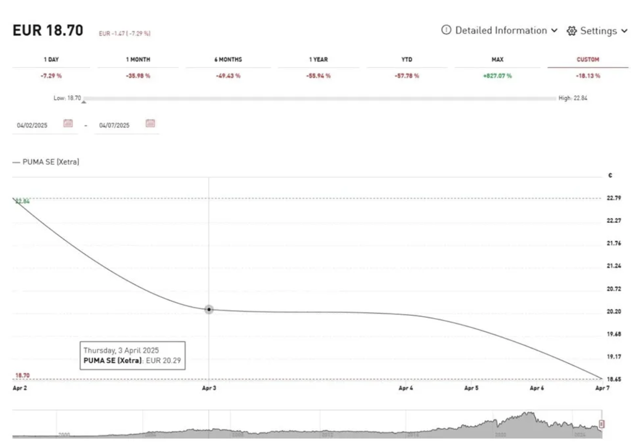 据每经报道,在美国宣布对东南亚国家征收“对等关税”的政策冲击下,德国老牌运动品牌彪马与瑞士新锐运动服饰公司On Holding AG(昂跑)双双遭遇股价闪崩与战略危机:彪马CEO阿恩·弗伦特(Arne Freundt)因战略执行分歧突然离职,阿迪达斯前高管火线接任,彪马股价三日(4月3日-4月7日)下跌17%;昂跑因鞋类产能90%集中于越南,股价单日(4月3日)重挫16%,就在关税大棒落下前,昂跑刚刚完成重大管理层调整。