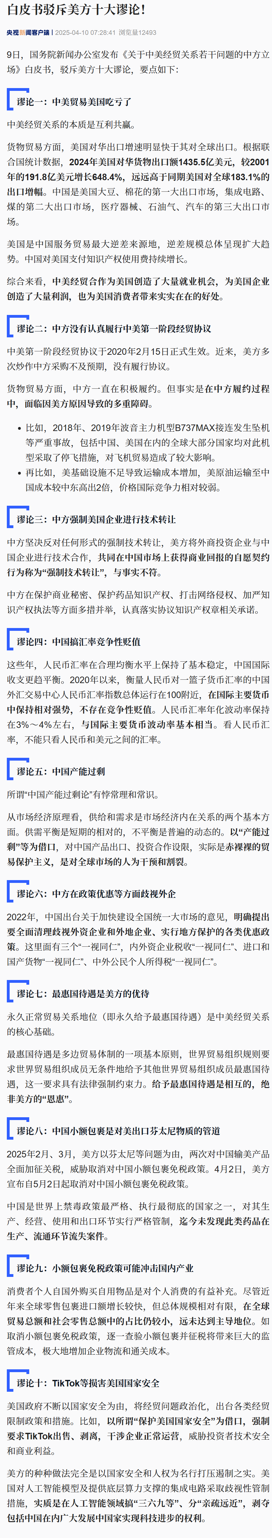白皮书驳斥美方十大谬论。