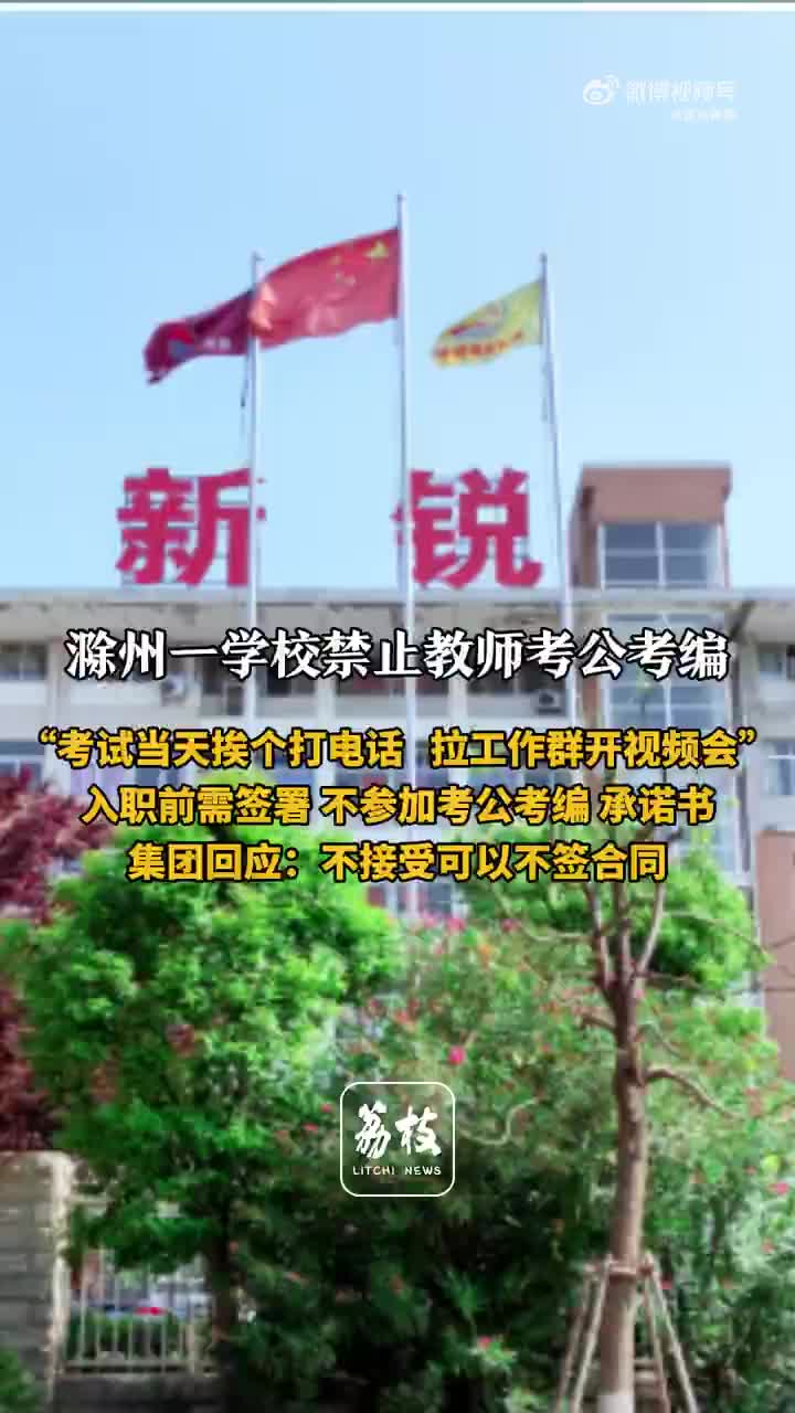 4月11日,安徽新锐教育集团旗下多个滁州学校教师向荔枝新闻反映,入职时被要求签订”不参加考公考编承诺书“,滁州市公务员或者事业编考试当天,学校会对符合考试条件的教师挨个打电话,或拉工作群开视频会议,没有及时回消息的教师,会认定为参加考公考编,将对参与考公考编人员进行处罚并通报。对此,滁州市新锐学校工作人员称:为了保证教学工作稳定,不接受可以不签合同。 (via 荔枝新闻)