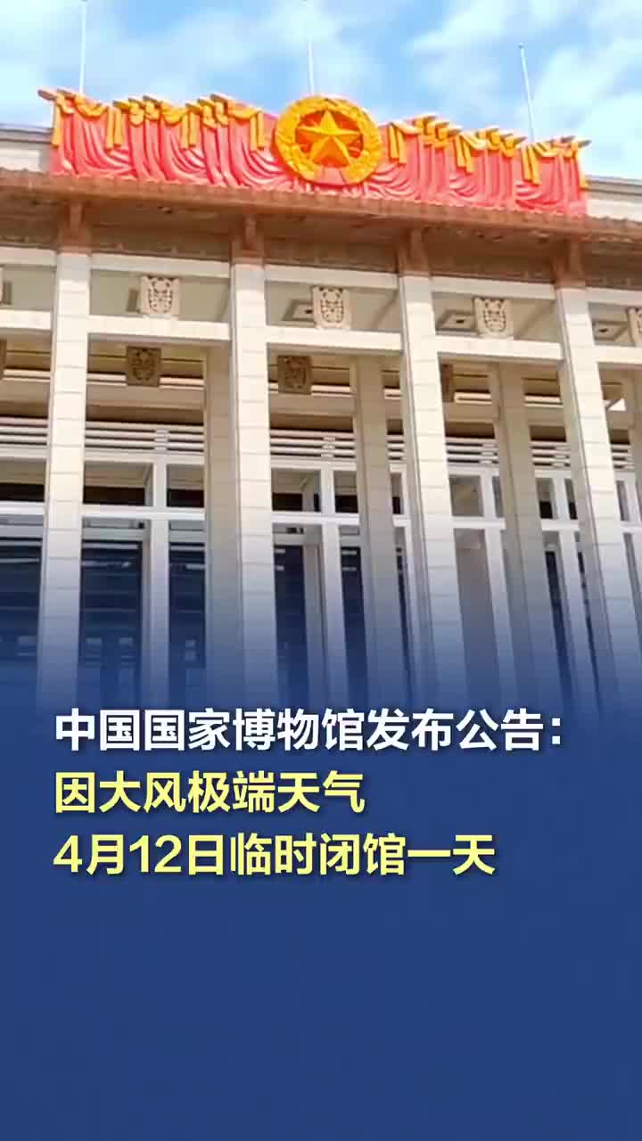 中国国家博物馆发布公告:因大风极端天气,4月12日临时闭馆一天。