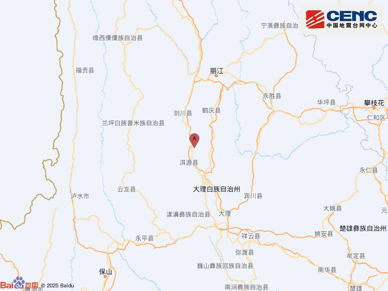 云南大理州洱源县附近发生3.2级左右地震。