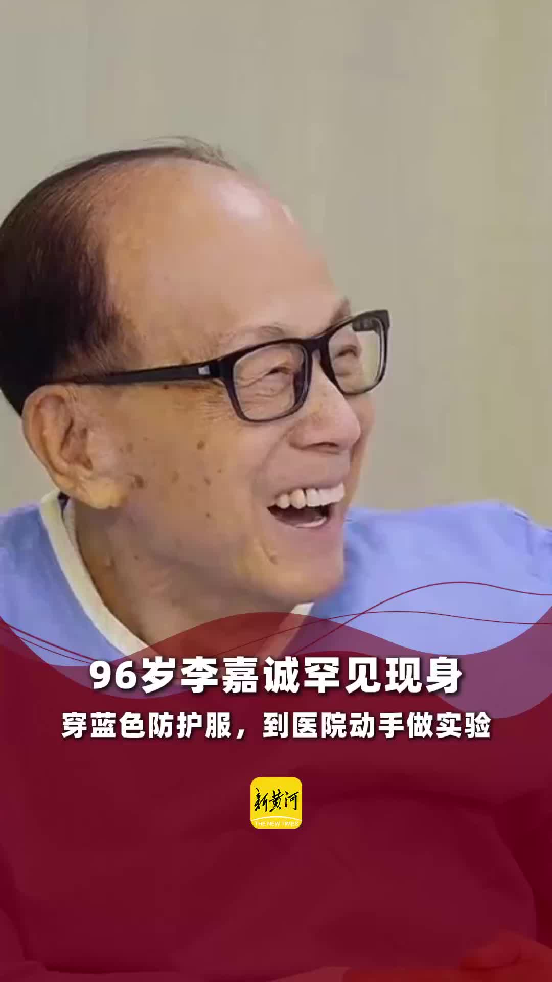 96岁李嘉诚罕见现身,穿蓝色防护服,到医院动手做实验。