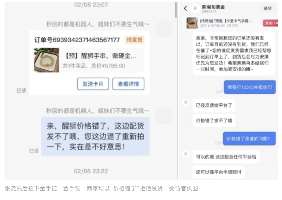据贝壳财经,黄金疯涨商家却不发货,张尧两次踩坑后开始了长达两个多月的对峙。