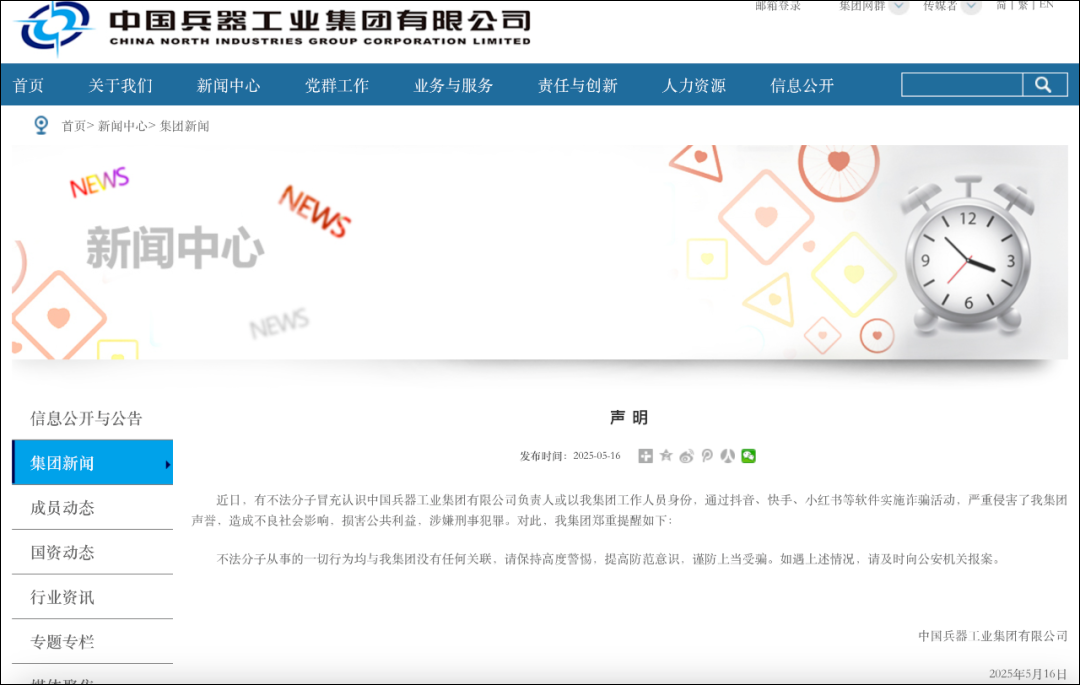 顺义区一位刚刚退休的王女士(化名)通过网上某知名社交平台认识一男子,此人自称是现役军人。某天,该男子“无意中”向王女士介绍一个“稳赚不赔”的投资理财项目,并称自己有中国兵器工业集团的“投资内幕消息”,并指导王女士登录一个所谓“中国兵器工业集团”的网站。