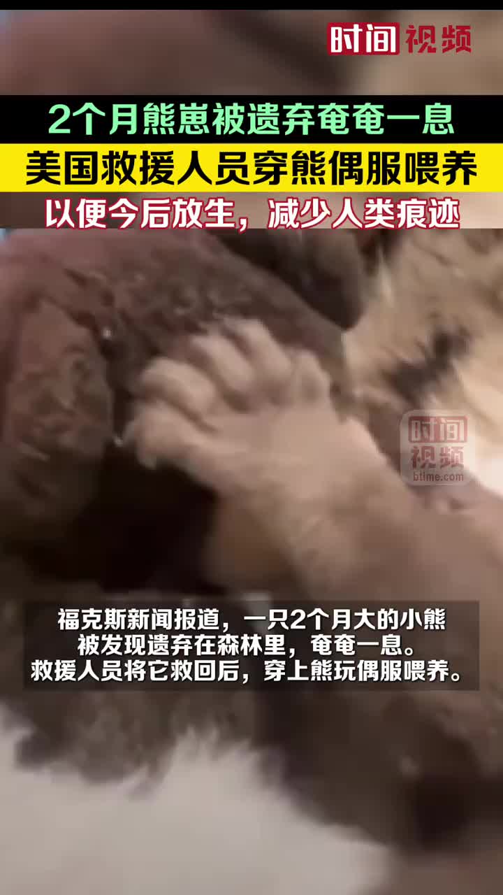 2个月熊崽被遗弃奄奄一息,美国救援人员穿熊偶服喂养。