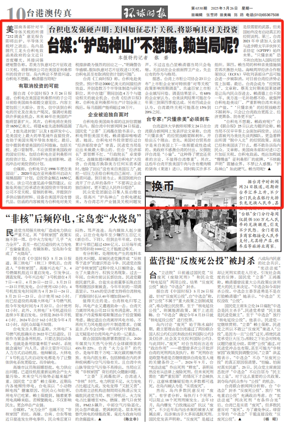 据环球时报援引台湾《中国时报》5月24日报道,台积电在美国亚利桑那州的子公司日前给美国商务部提交意见信,内容主要包括三大部分。