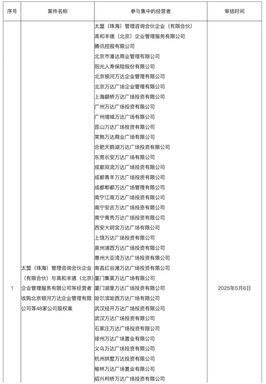 据界面,近日,万达集团开启了近两年最大的一笔交易。据国家市场监督管理总局披露,万达集团将一次性出手旗下48座自持的万达广场,买家为太盟、腾讯、京东等“熟人”投资者。
