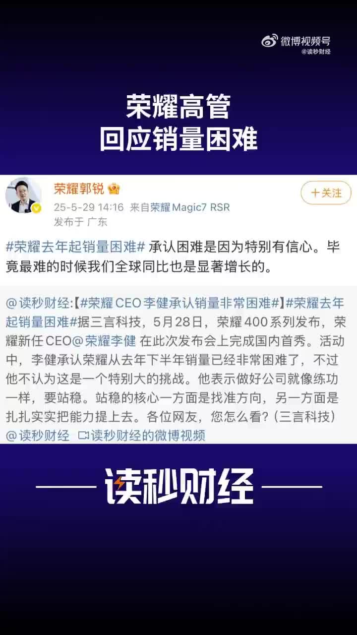 荣耀高管回应销量困难。
