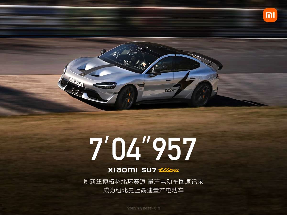7分04秒957,小米SU7 Ultra量产版创“纽北最速量产电动车”圈速纪录。