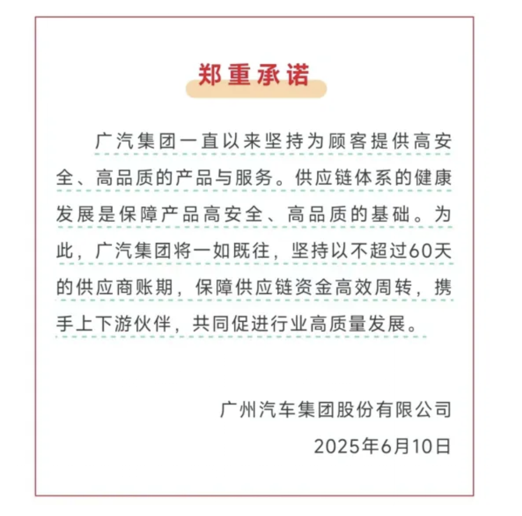 多家车企连夜宣布!承诺“支付账期不超过60天”。