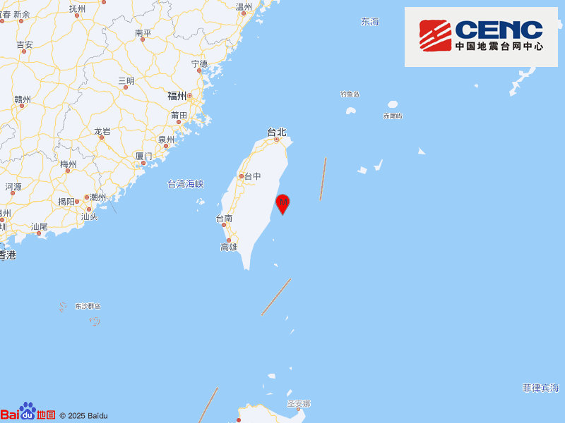 台湾台东县海域发生5.8级地震,震源深度20千米。