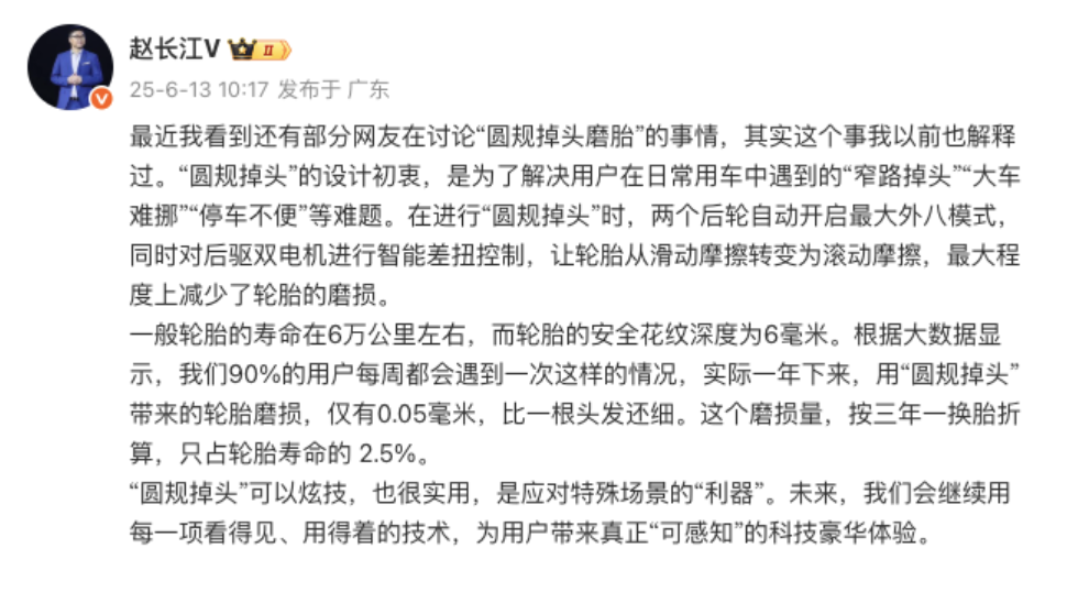 腾势高管回应“圆规掉头磨胎”:每周使用一次,年磨损仅0.05毫米。