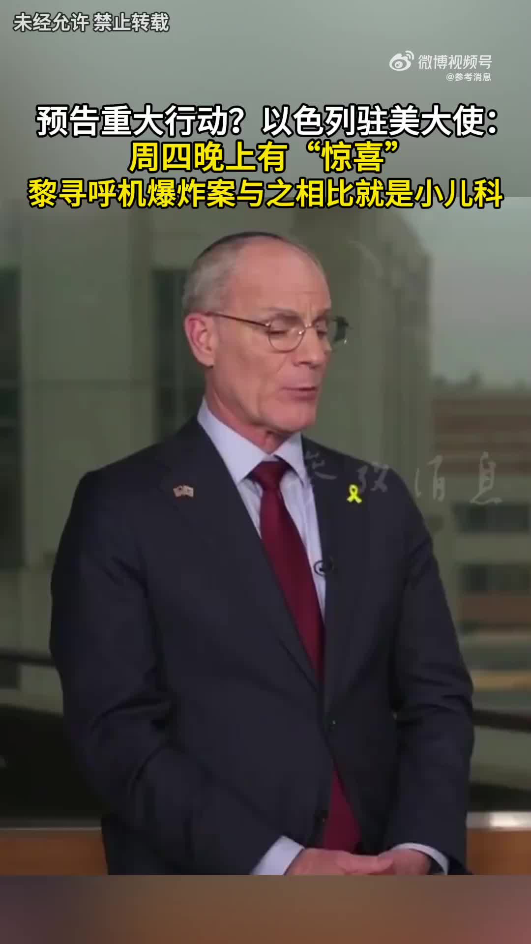 预告重大行动?以色列驻美大使:周四晚上有“惊喜”,寻呼机爆炸案与之相比就是小儿科。