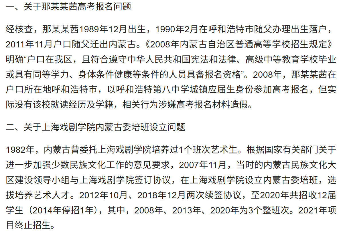 内蒙古发布关于那某某茜有关情况核查通报。