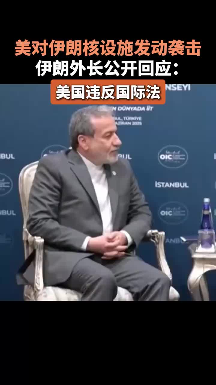 据卡塔尔半岛电视台6月22日报道,在美国对伊朗三处核设施发动空袭后,伊朗外交部长阿拉格齐首次公开发声,指责美国违反国际法。