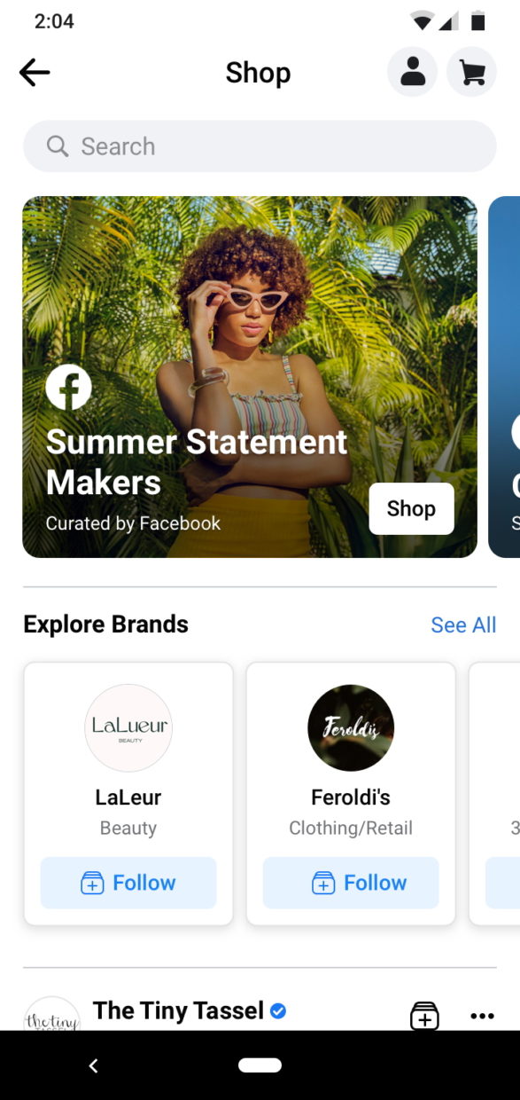 Facebook在主应用中增加购物板块,加大电商领域力度。