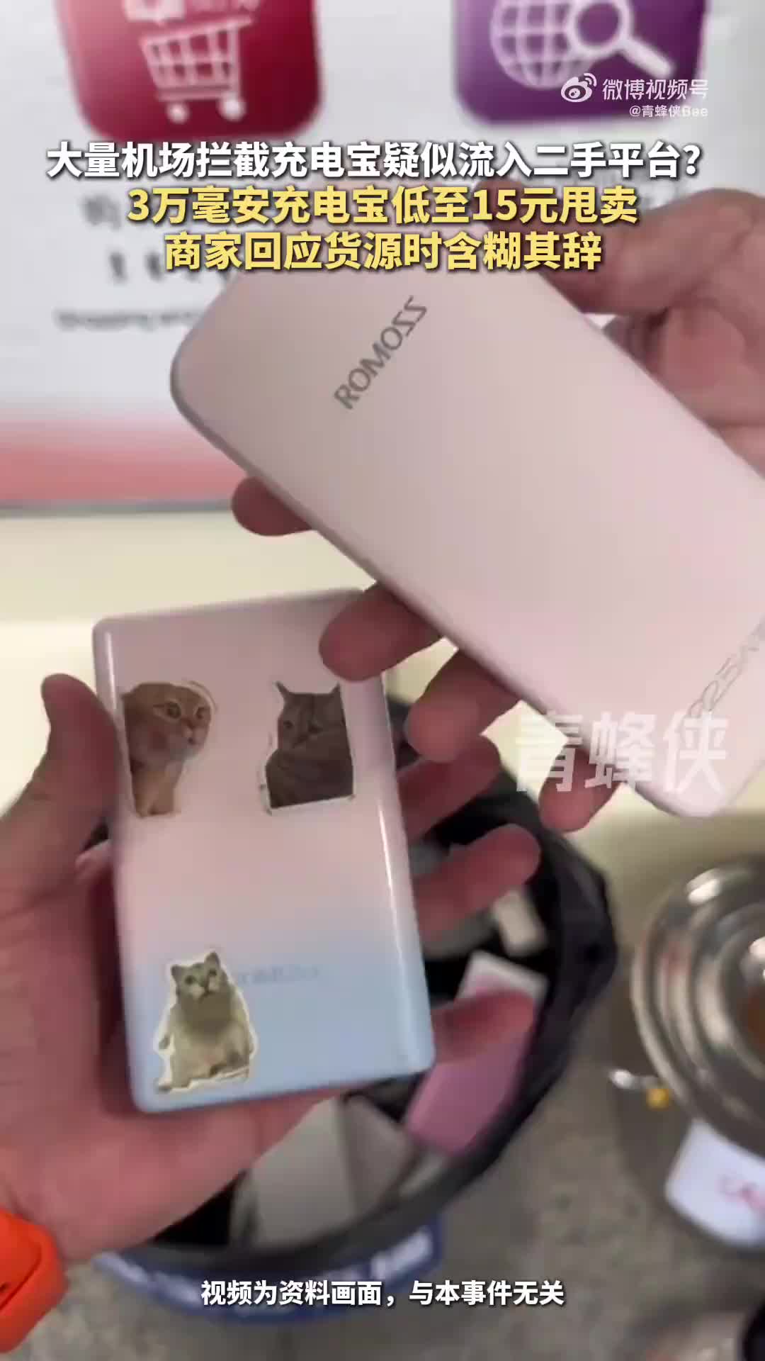 大量机场拦截充电宝疑似流入二手平台?商家回应货源时含糊其辞。