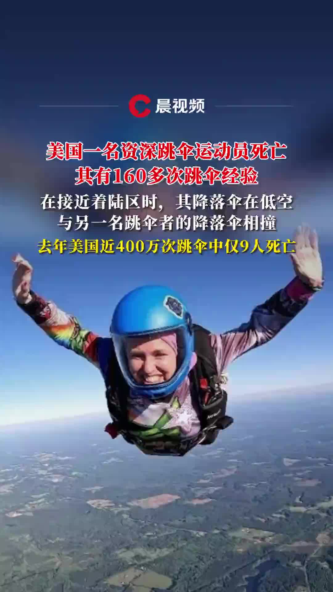 美国联邦航空管理局正协助调查。美国跳伞协会数据显示,去年美国近400万次跳伞中仅9人死亡,创1961年有统计以来最低纪录。同期,12.3%的跳伞需使用备用降落伞,5.6%的跳伞者因伤需就医,最常见的是着陆时脚踝受伤(via 潇湘晨报)