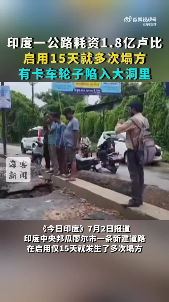 这条公路耗资1.8亿卢比(约合1500万元人民币)建造。现场视频中,一辆卡车的轮子陷入大洞里。道路接连塌方让当地人非常愤怒,他们对设计、施工等方面提出质疑。(via 海客新闻)