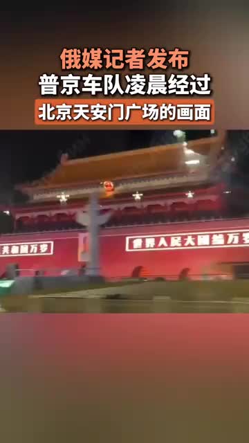 俄媒记者发布普京车队凌晨经过北京天安门广场的画面。