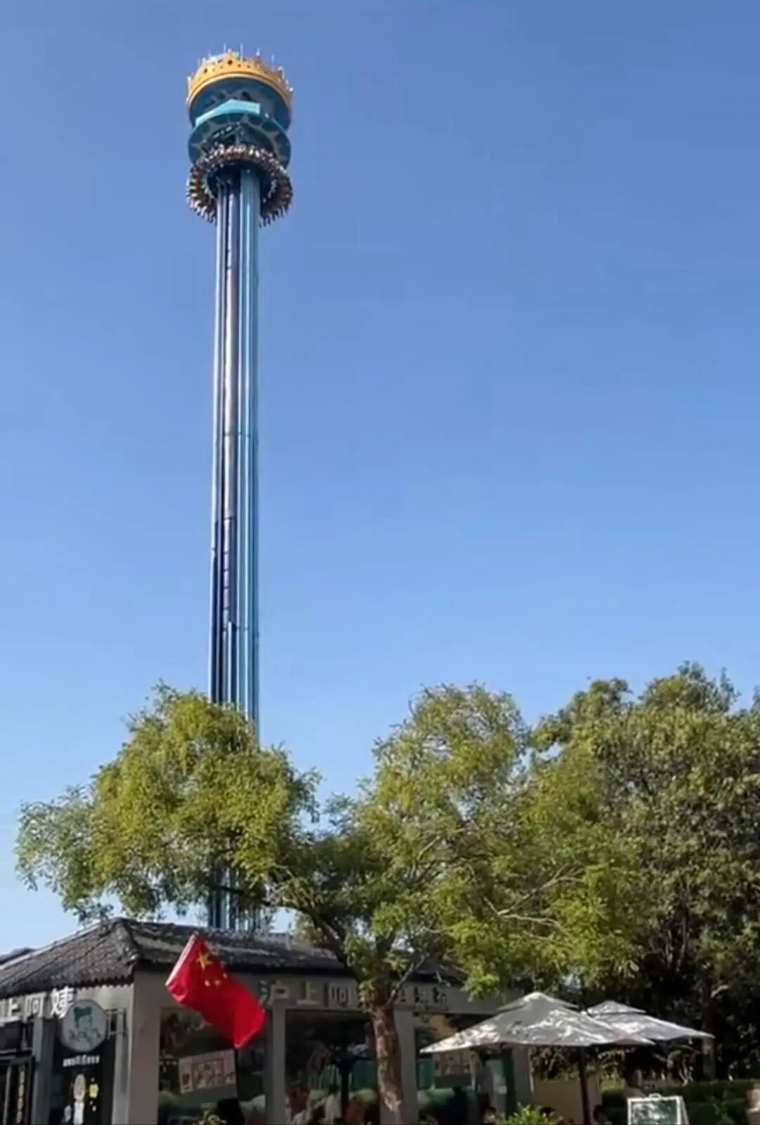 9月30日,有网友发布视频称,郑州方特欢乐世界跳楼机载人后在高空悬停时长七八分钟,后才开始正常运行。