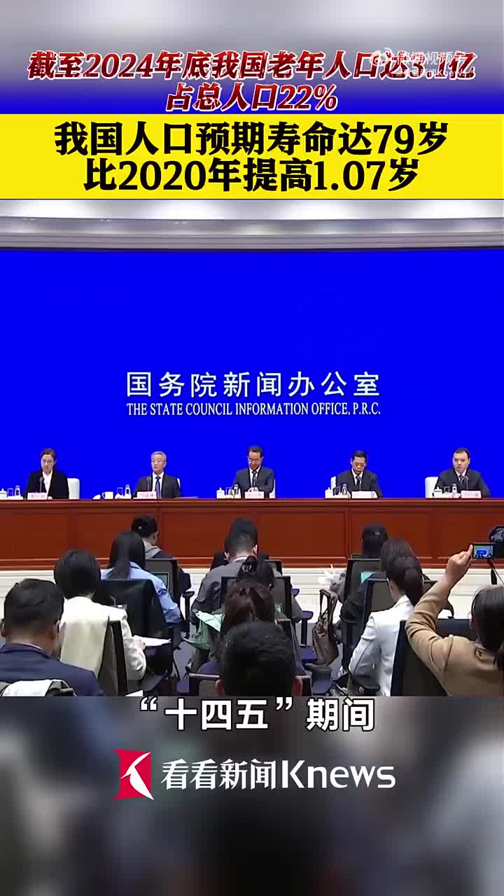 国务院新闻办公室10月10日举行“高质量完成‘十四五’规划”系列主题新闻发布会,介绍“十四五”时期民政事业发展成就。会上,民政部副部长刘振国介绍:“十四五”期间,我国人口预期寿命不断提高,达到79岁,比2020年提高了1.07岁,比世界平均水平高了5岁。 (via 看看新闻Knews)