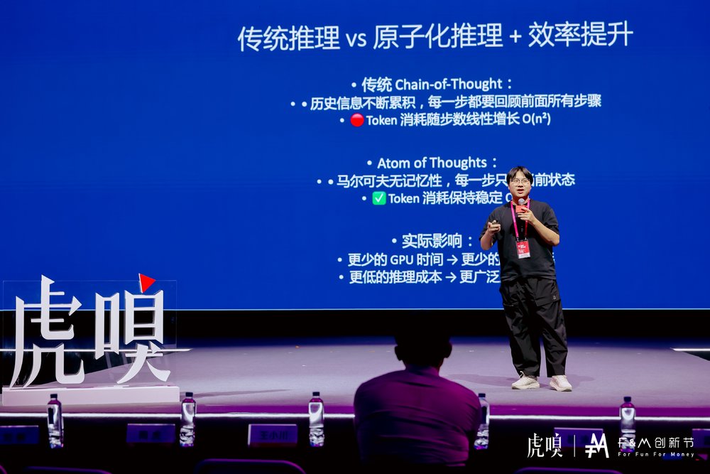 他认为传统推理的特点是历史信息不断累积,每一步都要回顾前面所有步骤,Token 消耗随步数线性增长 O(n²);而原子化推理遵循马尔可夫无记忆性,每一步只看当前状态,Token 消耗保持稳定 O(n)。因此,原子化推理不仅意味着更少的 GPU 时间、更少的电力消耗,也意味着更低的推理成本与更广泛的可及性。