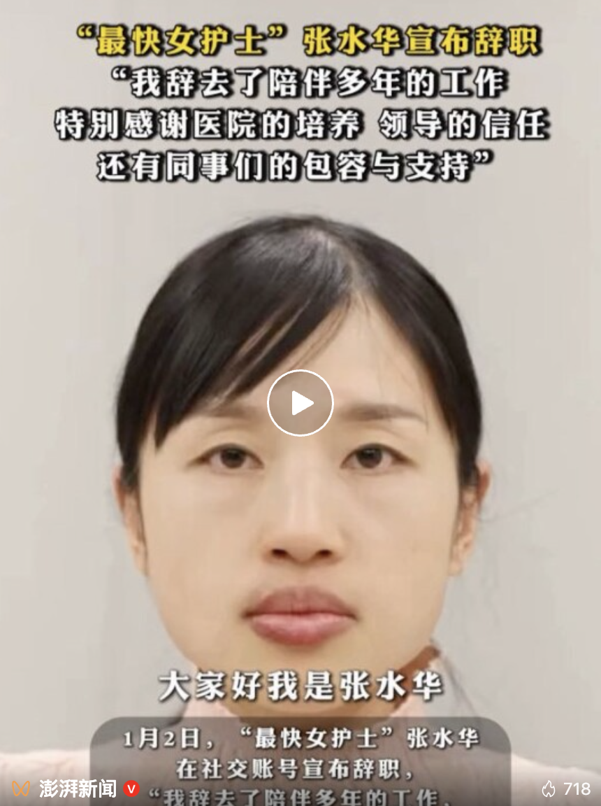 “最快女护士”张水华回应辞职。