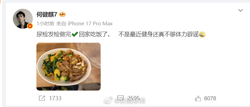 1月25日,前女友实名举报何健麒涉毒登上热搜。对此,发布严正声明。随后,发文:“大姐,营销号看多了吧,短剧演员没那么高收入,别搞我啦,一穷二白的,造谣你都得有个谱啊。”1月26日,举报者再回应:下午14:00本人已完成警方调查取证的笔录。1月26日晚,再发文:尿检发检做完,回家吃饭了。不是最近健身还真不够体力辟谣。